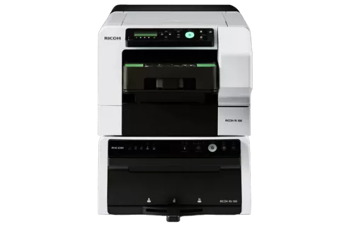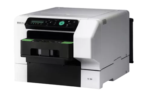 Con la RICOH Ri 100, puedes empezar con una Impresión directa sobre prenda (DTG) rápida y asequible.